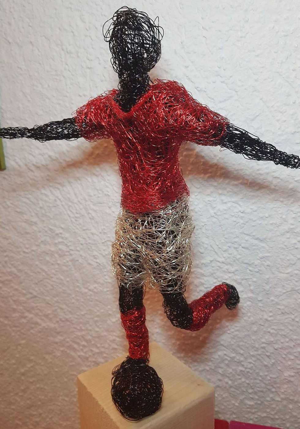 Fussballspieler,handgefertigt aus Kupfelackdraht H=40cm incl. Sockel (10x10x10cm